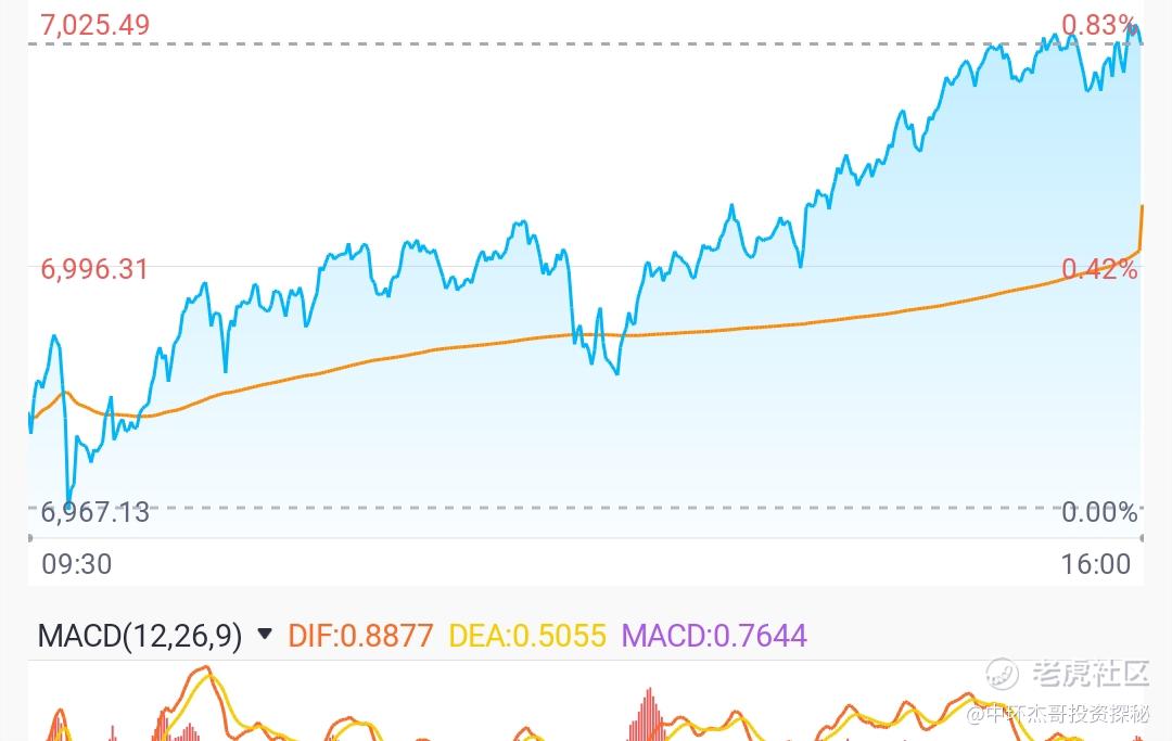 大涨冲高,阿里补涨,最近两天也明显走强,短期走势看好,空间也足,只是说,要关注相对美股的独立性,以及随着而来的振荡的方式。