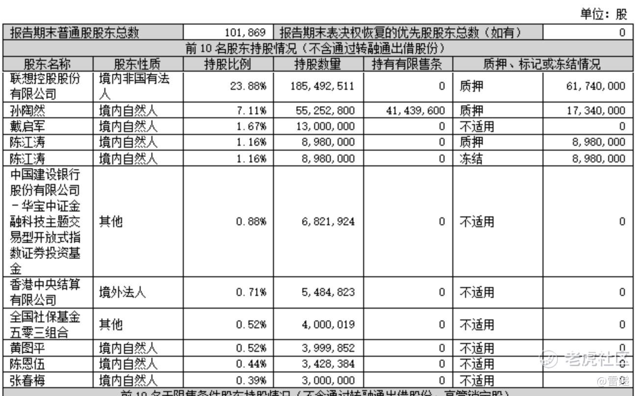 截至2026年3月31日,联想控股持股23.88%,孙陶然持股7.11%,戴启军持股1.67%,陈江涛持股为1.16%;
