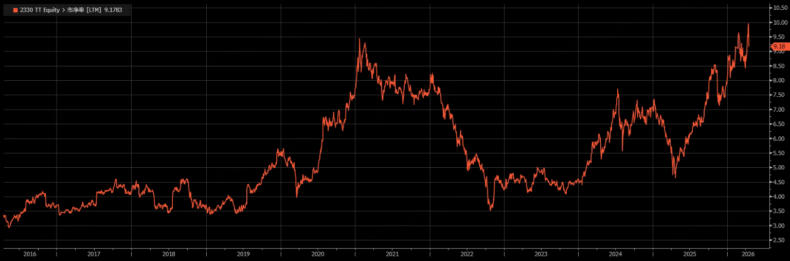 目前,台积电市净率为9.2倍,处于历史高位,但与2021年牛市高点持平,尚未呈现出明显的泡沫: