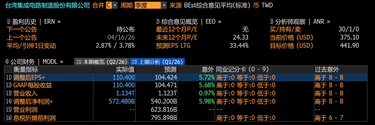 刚刚,芯片制造霸主 $台积电(TSM)$ 公布了一季报,营收及利润悉数超预期: