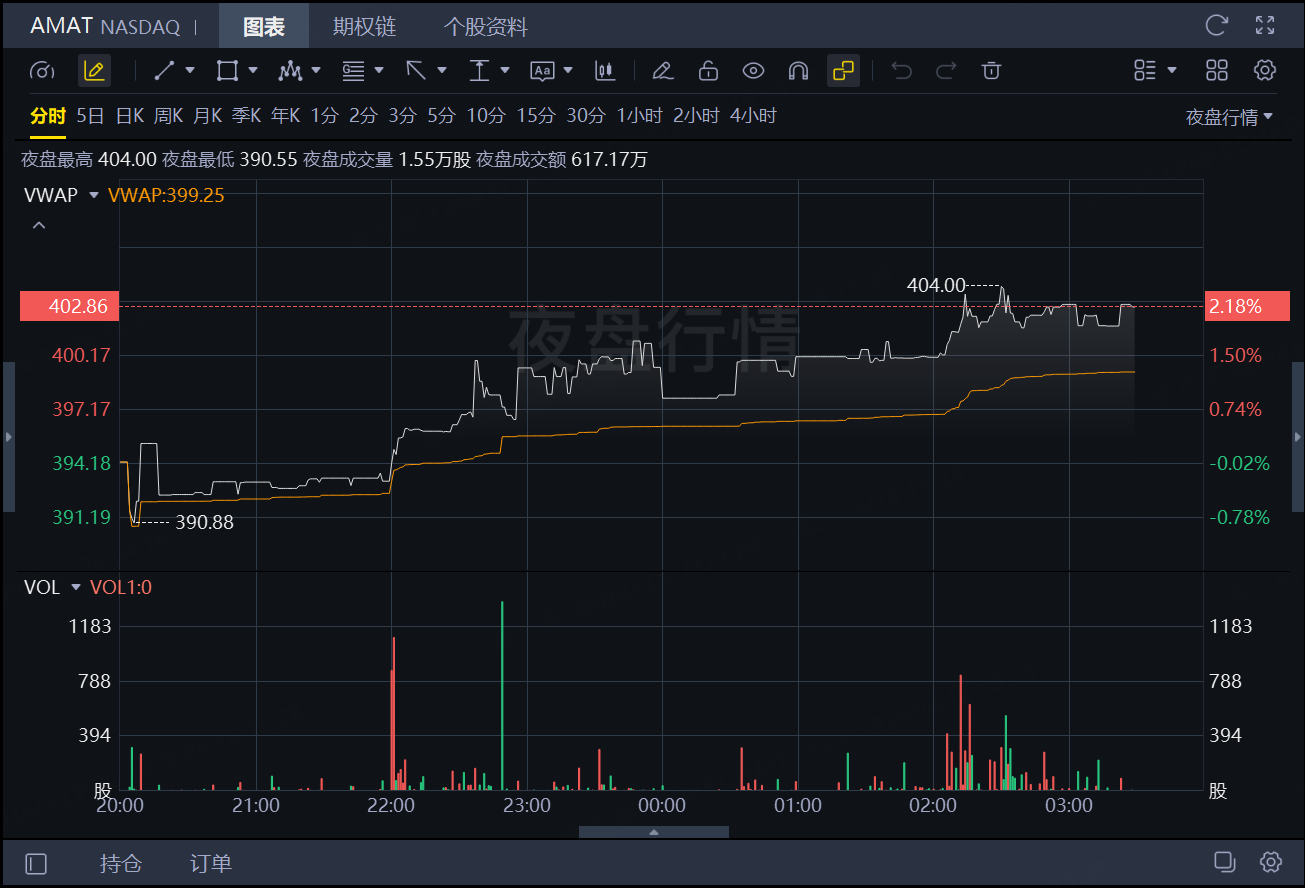 因此,应用材料夜盘涨超2%,表现比台积电还要好!