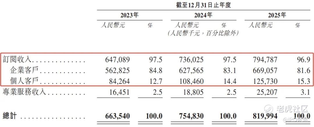 按服务类型划分, 公司的大部分收入来自订阅收入,于2025年约占当期总收入的96.9%。