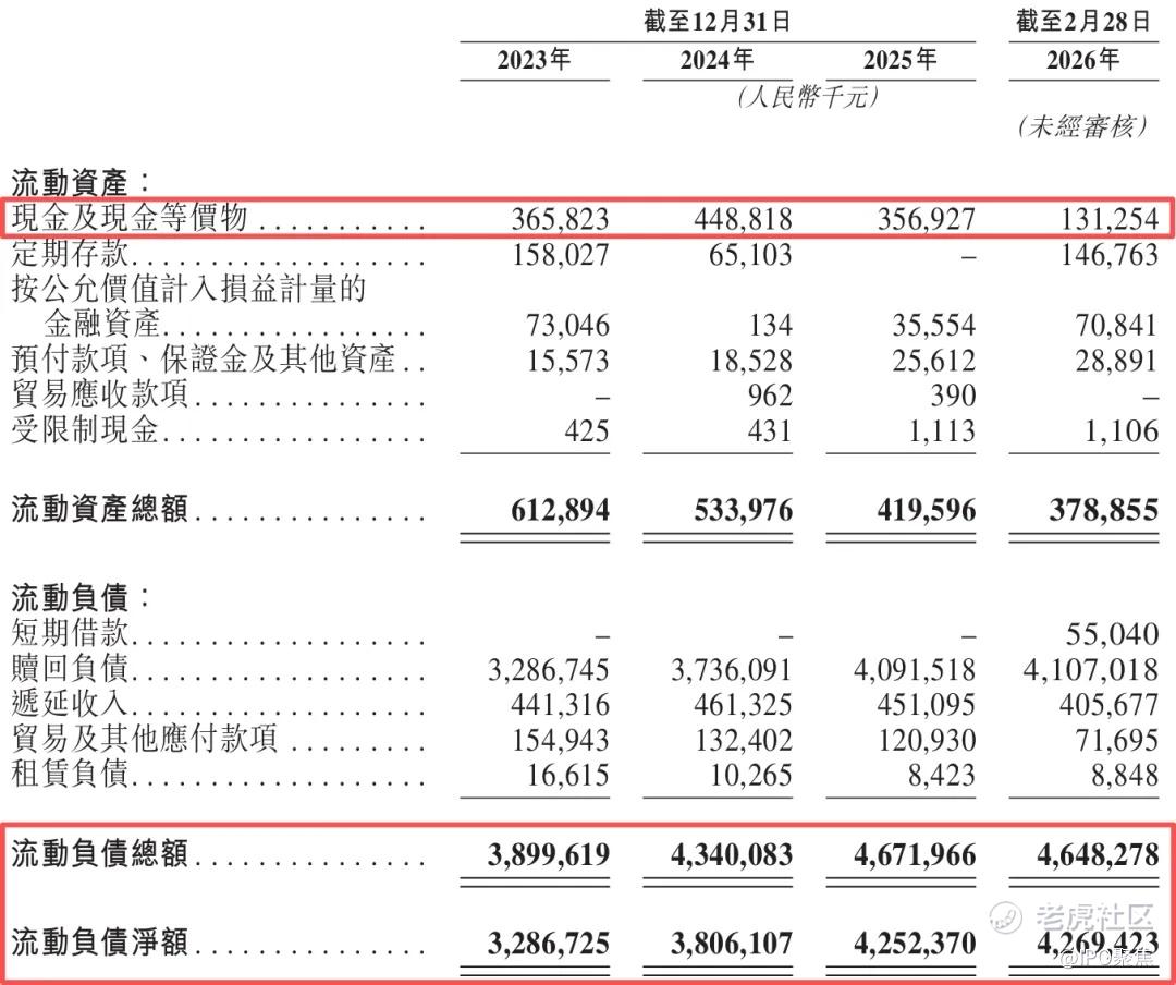 在营运资本方面,公司的现金储备尚可,截至2026年2月28日,现金及其等价物为1.3亿元。不过,公司的负债水平非常高,截至同期,流动负债总额为46.5亿元,流动负债净额为42.7亿元。