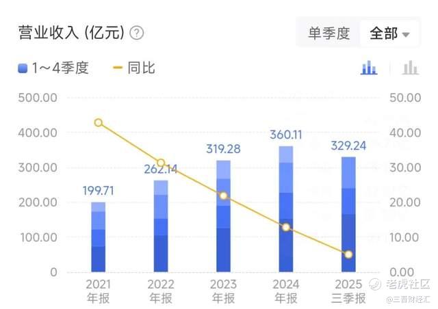 2025年行业调整压力加剧。而在此背景下,山西汾酒前三季度实现营收329.24亿元,同比增长5%,创下历史新高。归母净利润114.05亿元,同比增长0.48%。