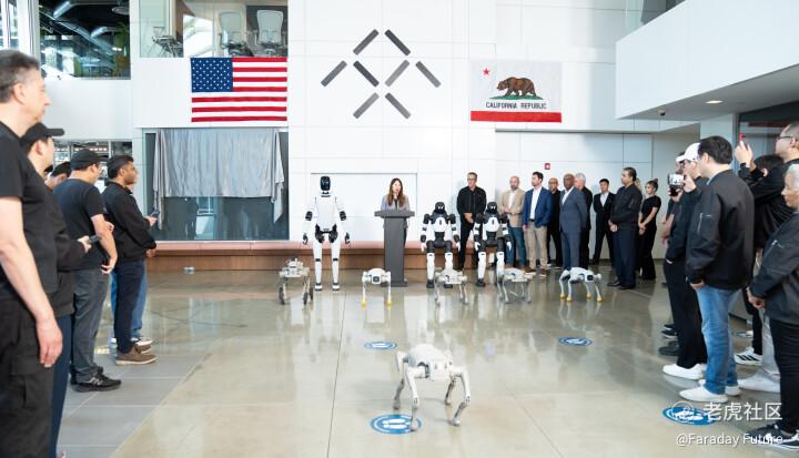 “此次加州财长Fiona Ma及El Segundo市长Chris Pimentel的莅临,是对FF在加州深耕EAI生态的重要认可,”FF创始人、Co-CEO贾跃亭表示,“FF是全美首家同时完成人形机器人及仿生机器人交付的公司,我们正在用真实的产品落地和场景部署,为加州带来高质量的科技就业、产业投资与EAI教育资源,与加州共同开启EAI产业的全新时代。”