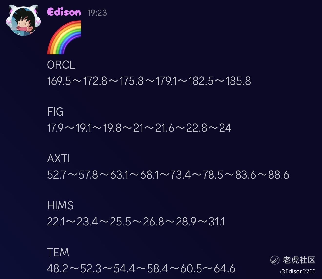 $甲骨文(ORCL)$ $Figma(FIG)$ $AXT Inc(AXTI)$ $Hims & Hers Health Inc.(HIMS)$ $Tempus AI(TEM)$ 点位分享,更加分享尽在简介