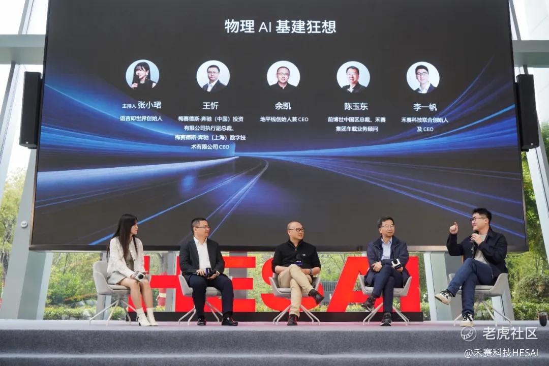 左二:梅赛德斯-奔驰(中国)投资有限公司执行副总裁、梅赛德斯-奔驰(上海)数字技术有限公司 CEO 王忻,左三:地平线创始人兼 CEO 余凯,右二:前博世中国区总裁、禾赛集团车载业务顾问 陈玉东,右一:禾赛科技联合创始人及 CEO 李一帆