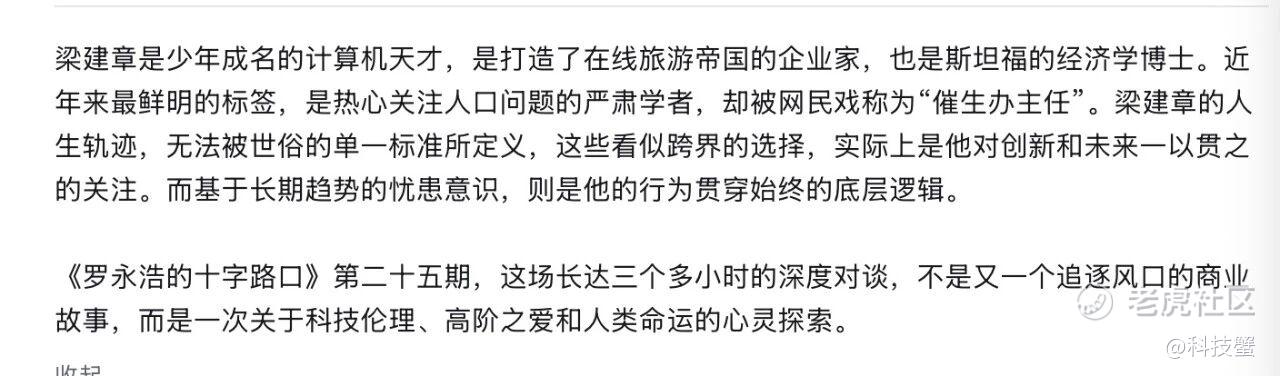 当我刷到梁建章上罗永浩播客的那段介绍语时,我整个人是处于一种极度震撼且间歇性失灵的状态。