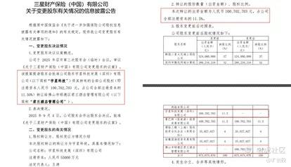 2025年9月,三星财险发布了一则变更股东的公告。原股东宇星科技将其持有的1.007亿元的全部股权,转让给佛山市顺德区君兰酒店管理有限公司,占全部注册资本的11.50%。