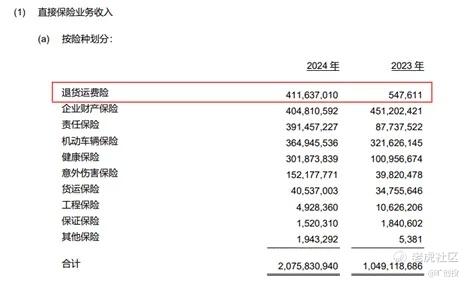再加上腾讯的生态优势,也让三星财险彻底摆脱了对传统车险的依赖。2024年,其退货运费险的保费规模为4.12亿元,成为该公司的第一大险种。