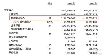 互联网巨头加入后,仅一年时间,三星财险的业绩就有了质的飞跃。2024年全年公司实现保险业务收入21.32亿元,较2023年的11.02亿元同比增长93.47%,几乎翻了一倍。
