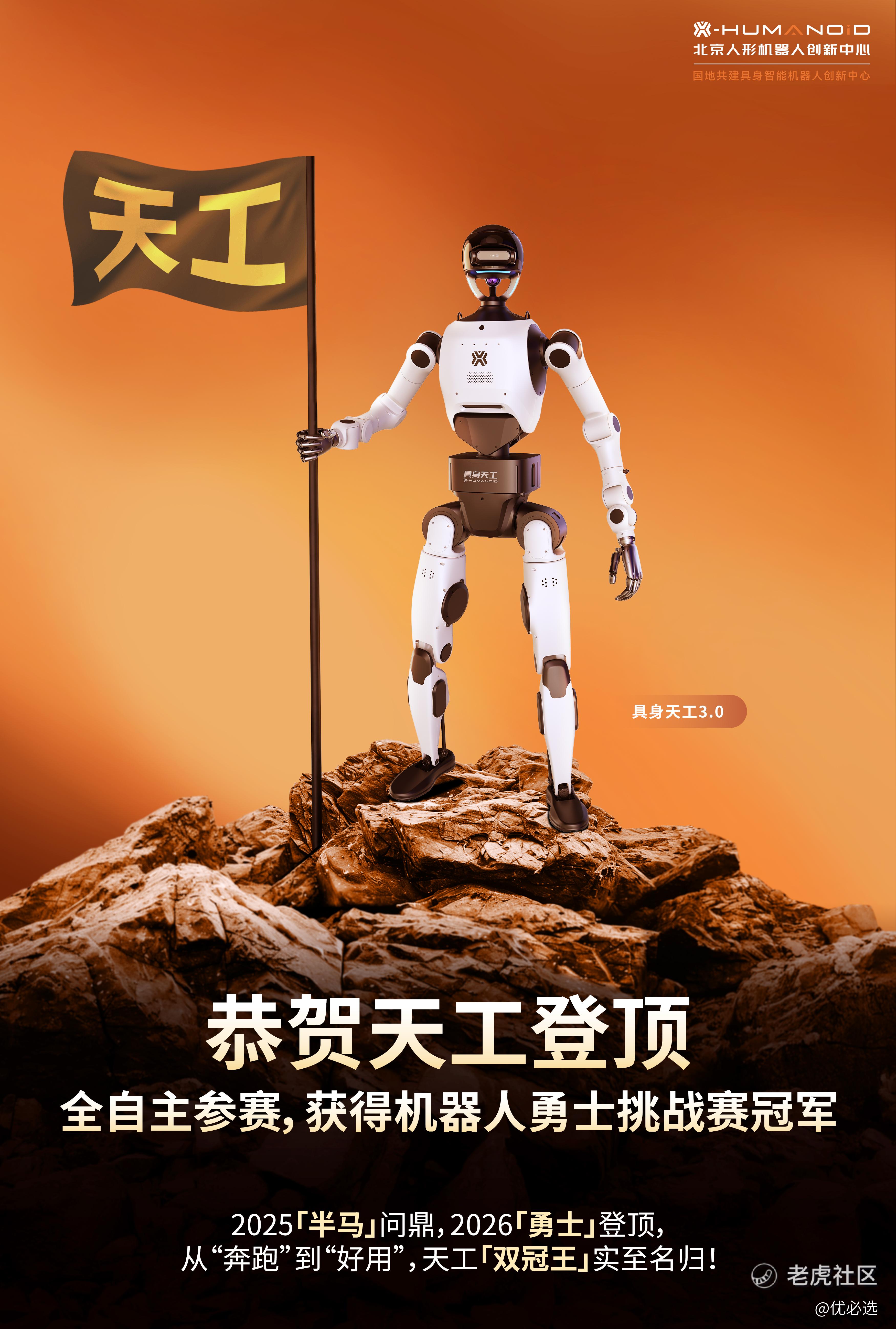 从2025年人形机器人马拉松冠军,到2026年全球首个机器人勇士挑战赛冠军,具身天工3.0以双冠王姿态,持续刷新具身智能世界纪录。本次夺冠不仅是技术胜利,更是全自主具身智能走向实用化、规模化的关键一步,标志着具身智能从运动能力比拼向实用价值验证的新篇章。