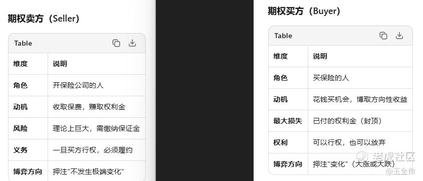 这是我作为买方的全部成本与最大损失,交易期权,本质是在交易一份“风险的保费”。就像买车险一样,我们支付保费获得保障,保险公司收取保费承担风险。期权市场就是无数个这样的"保险合同"在交易。期权市场有两类参与者,他们的地位完全不对等: