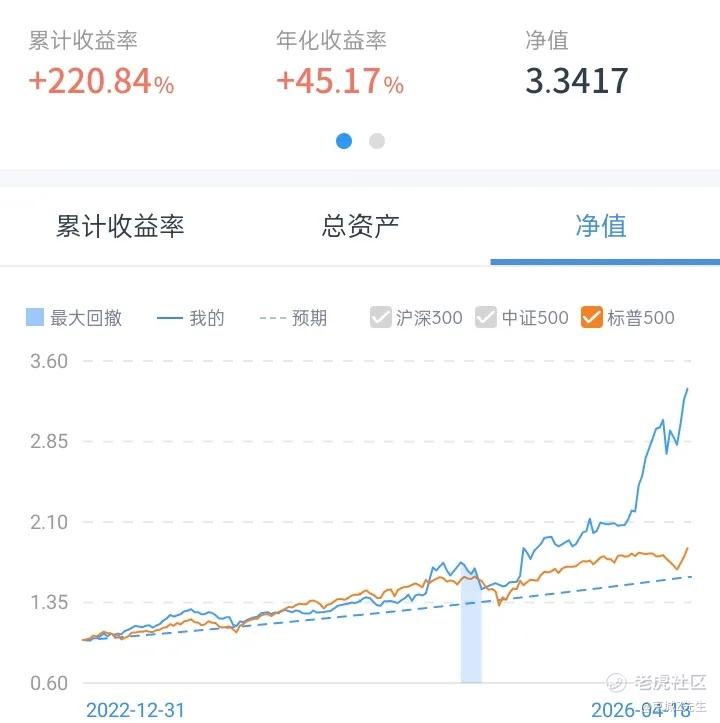 2026 年内标普 500 指数 上涨 4.10%,2026 年内我的实盘净值 上涨 52.01%(年初净值为2.20,本周净值3.34)。