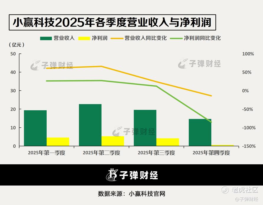 财报显示,小赢科技在2025年的营收与净利润同比增速,分别为30.09%、-4.89%。2025年四季度,其净利润仅为5720万元,同比大跌85.2%。