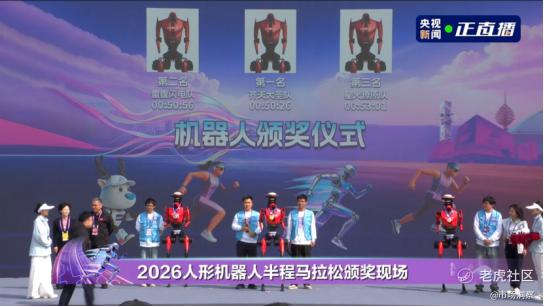 在4月19日举办的2026北京亦庄人形机器人半程马拉松上,荣耀“闪电”机器人包揽了前六名!其中,齐天大圣队以超越人类半程马拉松世界纪录的50分26秒(净用时)获得冠军。不仅如此,荣耀“闪电”机器人更是包揽了赛事的前六名。