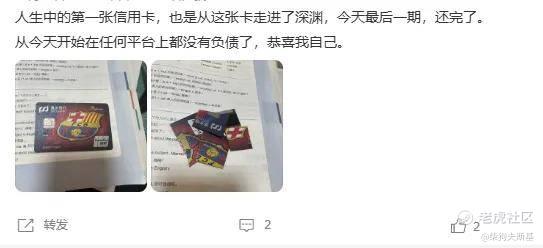 即有网友表示:人生中的第一张信用卡,也是从这张卡走进了深渊,今天最后一期,还完了。从今天开始在任何平台上都没有负债了,恭喜我自己。