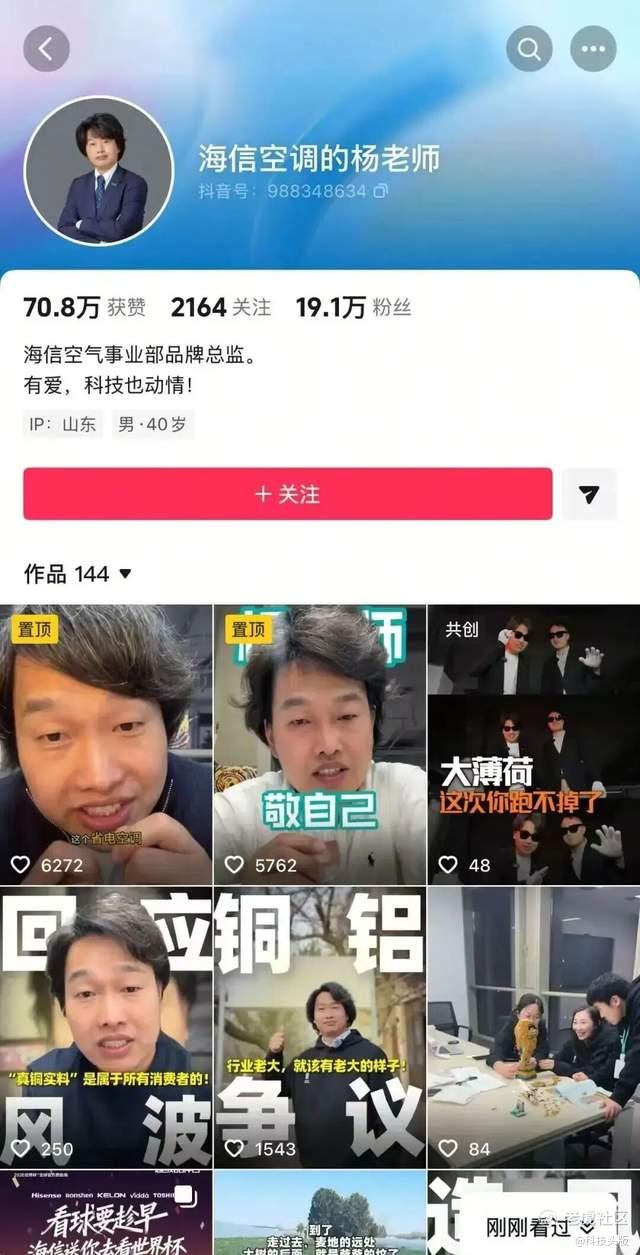 海信杨祥玺个人账号 | 图源:抖音