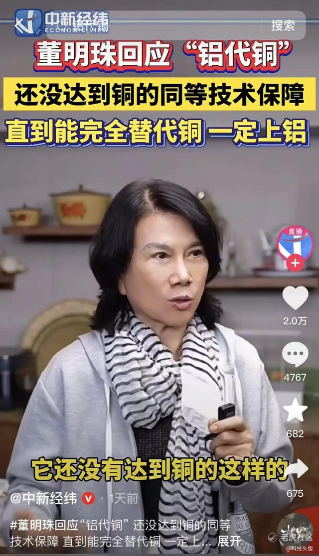 她曾表示,铝的技术格力研究了多年,但没有达到铜的同等保障,坚决不用。