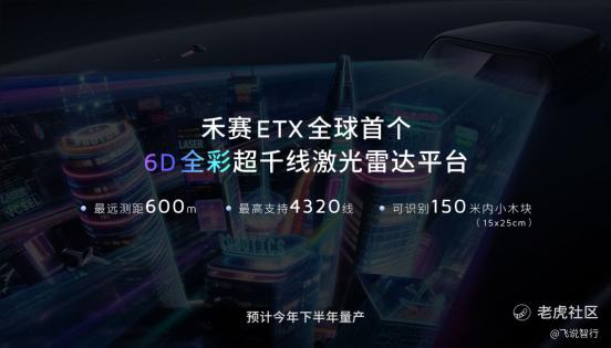 全新升级后的禾赛 ETX 是全球首个 6D 全彩超千线激光雷达平台。ETX 平台具备全球领先测距和小目标识别能力,可以做到最远 600 米和 10%反射率下的 400 米测距,并能清晰识别 300 米内水马(120x60 cm)、280 米内小动物(60x40 cm)、 150 米内小木块(15x25 cm)等小目标。