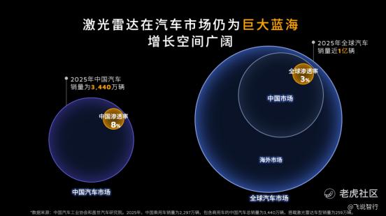 放眼全球,车载激光雷达仍是全球激光雷达产业的核心基本盘。当前,全球新车年销量近 1 亿辆,而 ADAS 激光雷达渗透率仅约 3%,智能化升级尚处早期阶段。尤为重要的是,海外市场渗透率远低于中国,欧美及新兴市场激光雷达搭载尚处起步阶段,仍是巨大的蓝海市场。随着 L2+向 L3 级智能驾驶跃迁,激光雷达正从"可选配置"升级为"安全刚需",头部车企已开启"单车多颗"标配趋势,市场迎来从渗透率提升到价值量倍增、从中国市场到全球市场的三重驱动。从 3%到标配的跃迁路径,预示着行业将进入长达十年的高增长周期,为产业链龙头释放广阔发展空间。