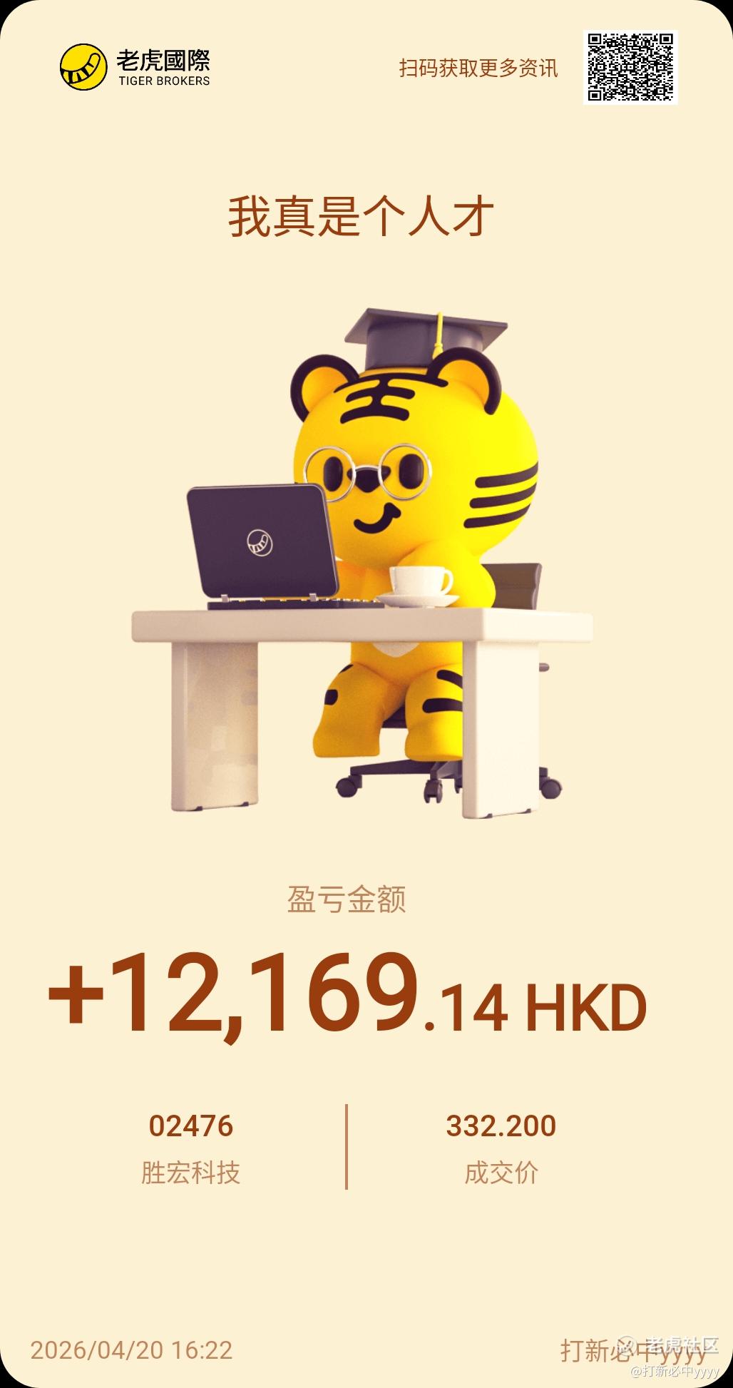 感恩老虎,挂单手误了,高价的时候没抓住,知足感恩