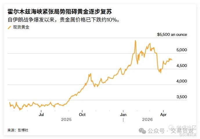旷日持久的冲突引发了前所未有的能源供应冲击,加剧了通胀压力,使得各国央行更有可能维持利率不变甚至加息——这对不产生收益的黄金构成不利影响。自2月底战争爆发以来,黄金价格已下跌约10%。