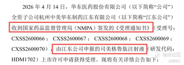 2026年3月下旬,诺和诺德的“药王”司美格鲁肽在中国市场的核心化合物专利正式到期。蓄势已久的国产仿制药企业随即涌入该赛道,多家企业向国家药监局提交了上市申请。其中,华东医药行动迅速,在专利到期后不到一个月便公告其司美格鲁肽注射液减重适应症上市申请获受理。此外,多家头部药企也位列申请者名单,一场围绕这款重磅药物的首仿竞争全面展开。