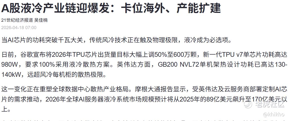 新一代TPU v7/v8芯片由于单片功耗激增,要求100%采用液冷方案,这直接带动了液冷服务器产业链的爆发 。具体而言,TPU v7单芯片功耗高达980W,远超传统风冷方案的散热极限。谷歌在液冷技术方面已有深厚积累。自2018年TPU v3起,谷歌就开始部署液冷方案,目前拥有约1吉瓦的液冷基础设施容量 。TPU v7采用第三代液冷基础设施,包括板级冷板、机架级歧管和盲插快速接头,与OCP ORv3液冷标准高度一致 。其创新设计在于通过阀门主动控制冷却液流速,根据每颗芯片的实时工作负载动态调整散热能力,实现更高效的冷却。