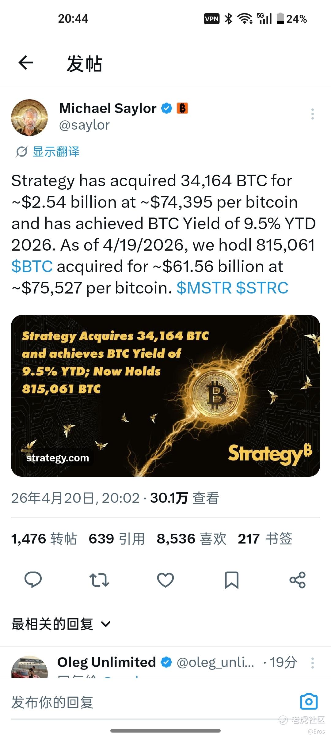 {"i18n":{"language":"zh_CN"},"data":{"magic":2,"id":555649453400848,"tweetId":"555649453400848","gmtCreate":1776689769695,"gmtModify":1776690231380,"author":{"id":3511935014278283,"idStr":"3511935014278283","authorId":3511935014278283,"authorIdStr":"3511935014278283","name":"Eros","avatar":"https://static.tigerbbs.com/e5a1392b3f28c01f21850cbf87a20d7c","vip":1,"userType":1,"introduction":"","boolIsFan":false,"boolIsHead":false,"crmLevel":2,"crmLevelSwitch":0,"individualDisplayBadges":[],"wearingBadges":[],"fanSize":7,"starInvestorFlag":false},"themes":[],"images":[{"img":"https://static.tigerbbs.com/418c19a695578614f83e5318fa4ca94c","width":"1080","height":"2412"}],"coverImages":[{"img":"https://static.tigerbbs.com/418c19a695578614f83e5318fa4ca94c","width":"1080","height":"2412"}],"title":"","html":"<html><head></head><body><p><a href=\"https://laohu8.com/S/MSTR\">$Strategy(MSTR)$ </a> 这周3.4万枚大饼的购买,总持有量超越黑石投资了</p><img src=\"https://static.tigerbbs.com/418c19a695578614f83e5318fa4ca94c\" tg-width=\"1080\" tg-height=\"2412\"></body></html>","htmlText":"<html><head></head><body><p><a href=\"https://laohu8.com/S/MSTR\">$Strategy(MSTR)$ </a> 这周3.4万枚大饼的购买,总持有量超越黑石投资了</p><img src=\"https://static.tigerbbs.com/418c19a695578614f83e5318fa4ca94c\" tg-width=\"1080\" tg-height=\"2412\"></body></html>","text":"$Strategy(MSTR)$ 这周3.4万枚大饼的购买,总持有量超越黑石投资了","highlighted":1,"essential":1,"paper":1,"likeSize":1,"commentSize":0,"repostSize":0,"favoriteSize":0,"link":"https://laohu8.com/post/555649453400848","repostId":0,"isVote":1,"tweetType":1,"viewCount":133,"commentLimit":10,"likeStatus":false,"favoriteStatus":false,"reportStatus":false,"symbols":["MSTR"],"verified":2,"subType":0,"readableState":1,"langContent":"CN","currentLanguage":"CN","warmUpFlag":false,"orderFlag":false,"shareable":true,"causeOfNotShareable":"","featuresForAnalytics":[],"commentAndTweetFlag":false,"andRepostAutoSelectedFlag":false,"upFlag":false,"length":60,"optionInvolvedFlag":false,"xxTargetLangEnum":"ZH_CN"},"commentList":[],"hasMoreComment":false,"orderType":2}
