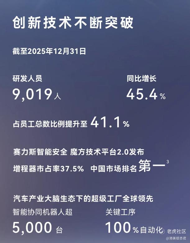 市场往往低估了研发投入的复利效应。2025年赛力斯研发投入125.1亿元,同比暴增77.4%,研发人员占比提升至41.1%。这些投入正在转化为可量化的竞争壁垒:增程器市占率37.5%位居中国第一,魔方技术平台2.0、智能安全体系接连落地。这意味着用户已经深度依赖其智能驾驶能力,形成了极高的切换成本。