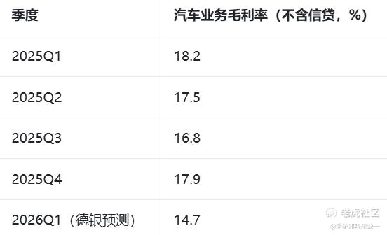 毛利率是本季度市场最关注的压力点。德银预计汽车业务毛利率(不含信贷)将从四季度的17.9%下滑至14.7%,这也是特斯拉汽车毛利率近两年来的最低水平。下滑的原因非常清晰:一方面是交付量下降带来的规模效应减弱,另一方面是2月15日起FSD全面取消一次性买断、转为纯订阅制。一次性买断的高利润率在过去对汽车毛利率贡献显著,短期转型必然会对利润造成冲击,但长期来看,订阅模式的现金流稳定性和可预测性要远好于一次性销售。