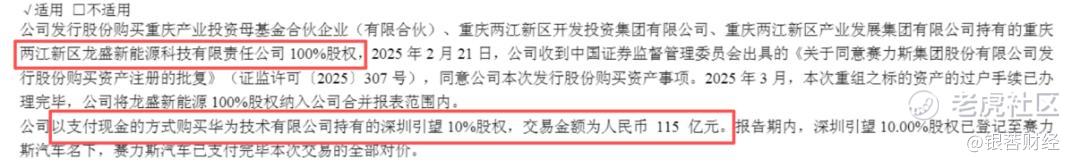 此外还有两笔收购。其一,发行股份(成本85.18亿元)收购超级工厂重庆两江新区龙盛新能源的资产;其二,斥资6.63亿元收购了重庆金康动力新能源,后者主要负责三电系统的开发。