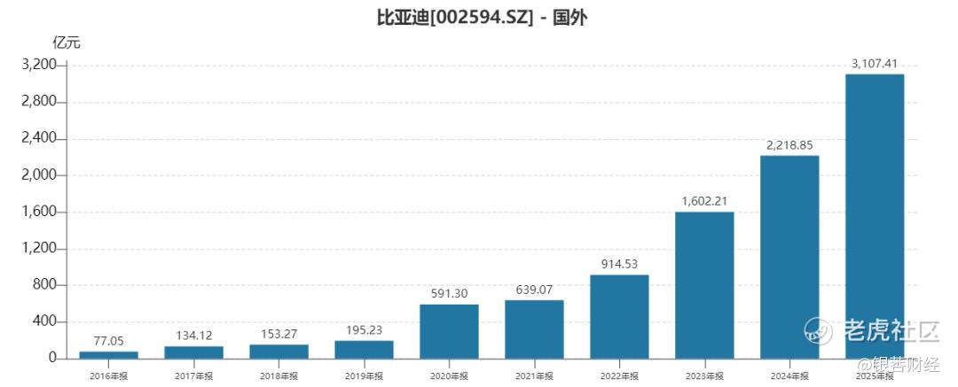 从比亚迪海外收入的趋势来看,一直处于持续递增状态。