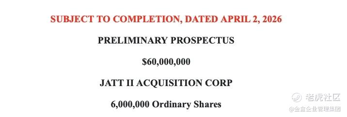 JATT II Acquisition Corp(以下简称 “公司” 或 “JATT”,股票代码:JATT)已于 2026 年 4 月 20 日顺利完成首次公开募股(IPO)交割,正式在纳斯达克全球市场挂牌交易。本次 IPO 的成功落地,标志着公司开启聚焦医疗健康领域并购整合的战略布局,为后续对接优质产业标的、赋能行业创新发展奠定坚实基础。