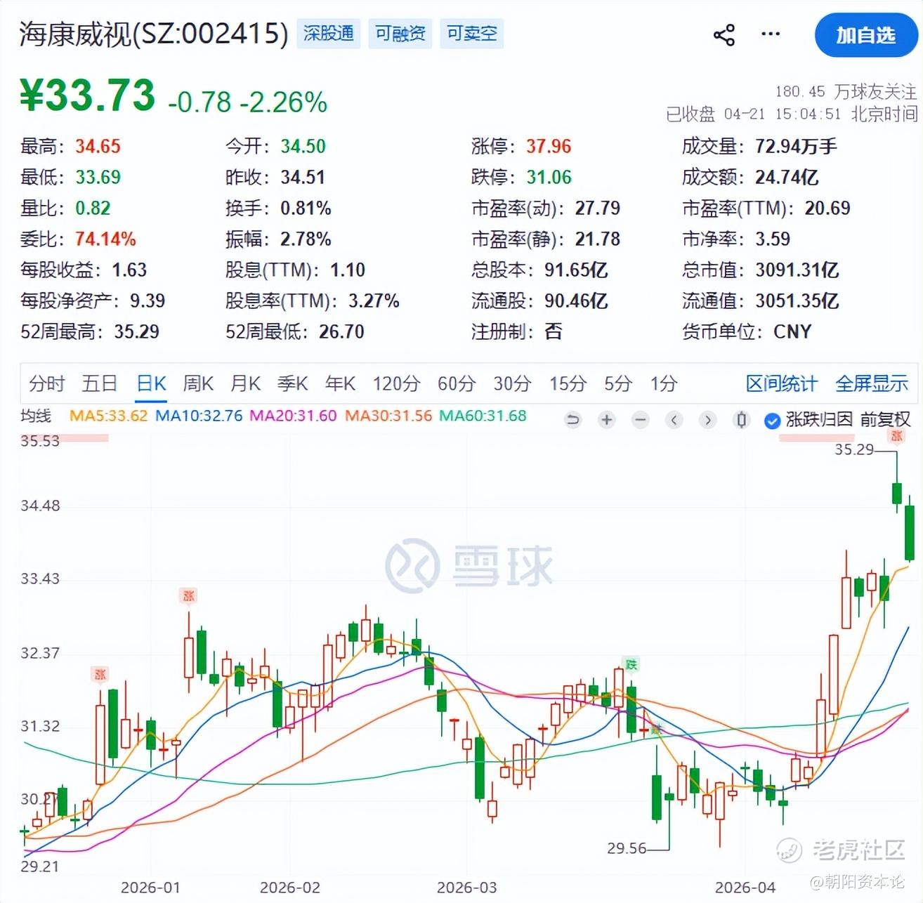 不过,年报发布后,海康威视二级市场反而突破了长期盘整平台,4月20日盘中创下2023年底以来的新高。