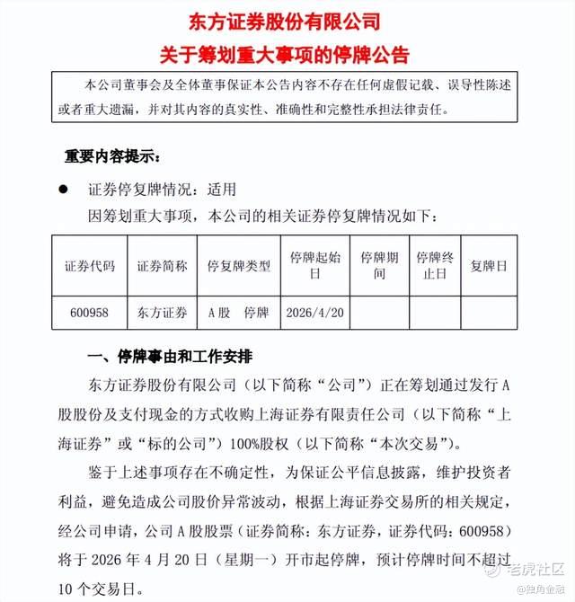 东方证券4月19日公告,拟通过发行A股股份及现金支付,收购上海证券100%股权,公司股票自4月20日起停牌,预计不超过10个交易日。