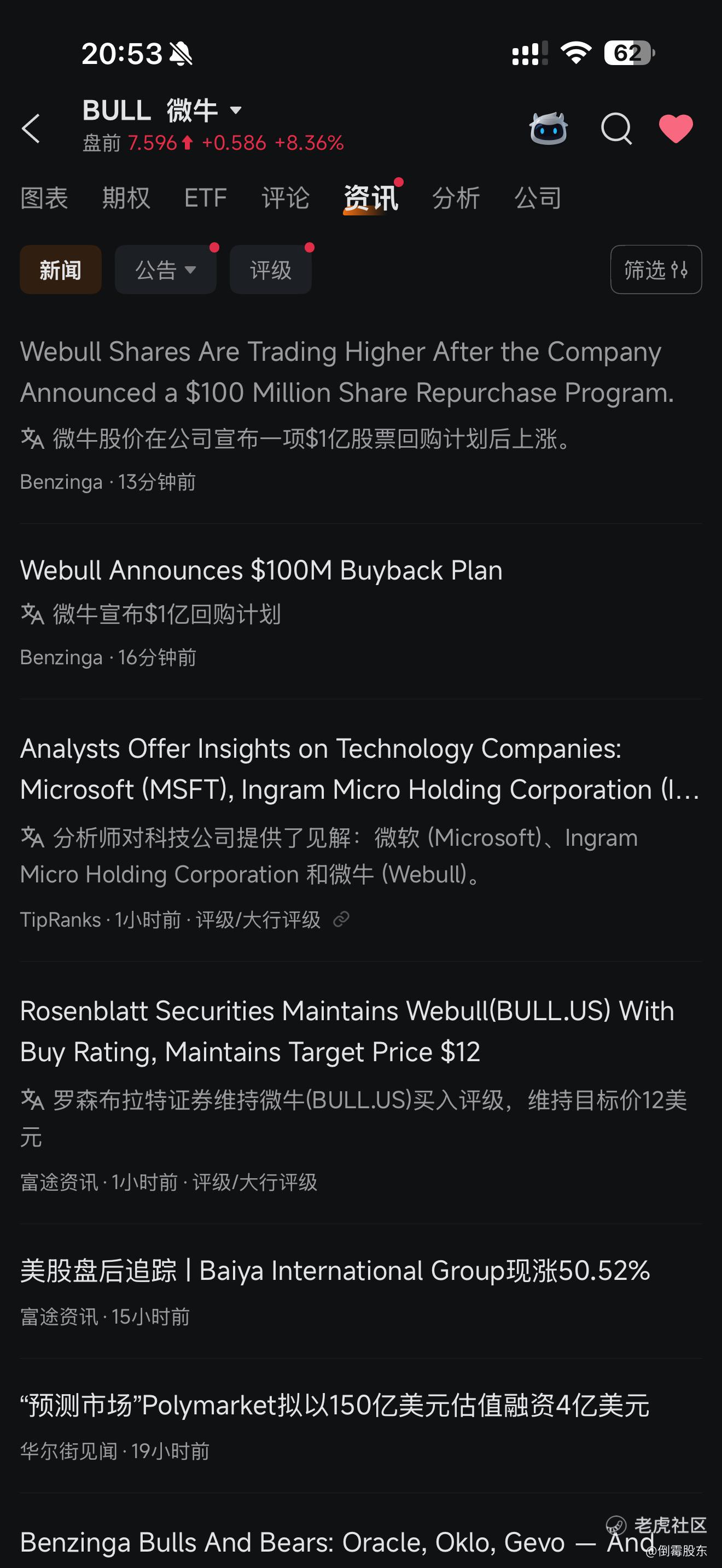 $老虎证券(TIGR)$ $微牛(BULL)$  怪不得微牛大涨,原来是回购,笑死了 。老虎还要隐藏这个咨询[开心]  [开心]  [开心]  @巫天华 @小虎产品经理 @老虎国际 这种消息都不更新上来。你们牛!
