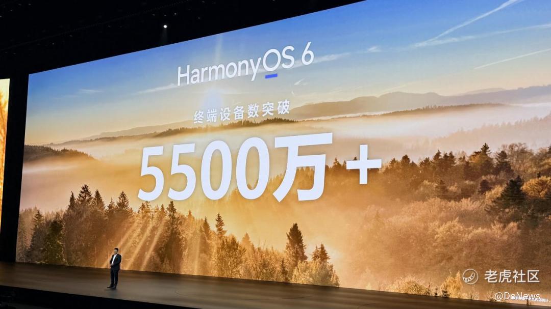 余承东现场披露,过去不到半年时间里,搭载鸿蒙HarmonyOS 6的终端设备新增2300万台,目前总量已正式突破5500万台,鸿蒙正从“可用”加速迈向“好用”。