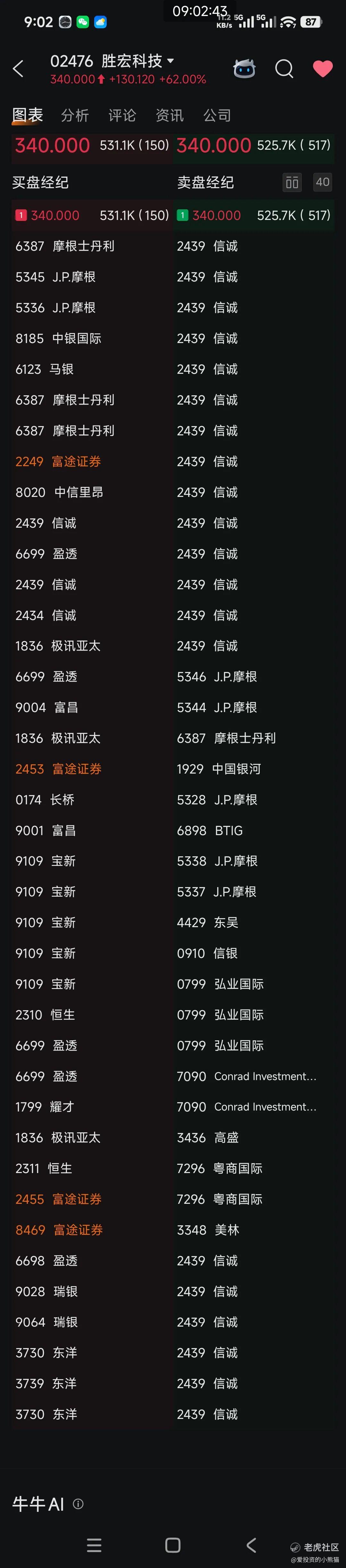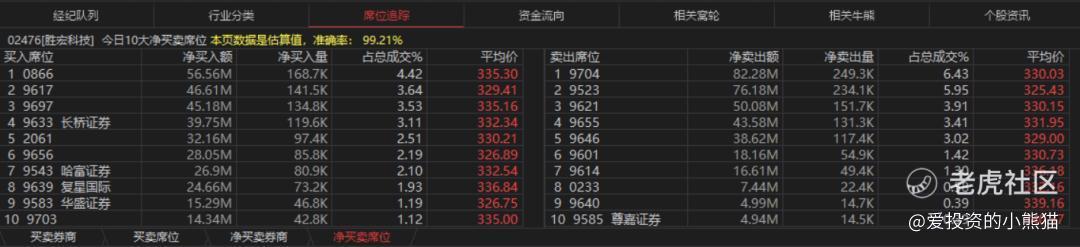 胜宏科技(02476.HK)买盘席位有0866,9617, 9697, 9633等,卖盘第一席位是9704。