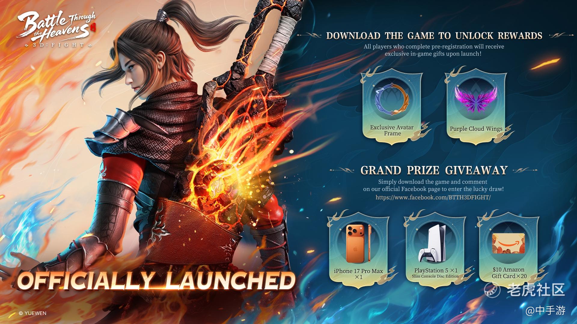 《斗破苍穹:无双》官方 Facebook 社区同步开启专属福利活动!即日起,玩家关注官方FB主页,参与晒游戏角色 ID 图、点赞、转发等互动任务,即可参与抽奖,有机会赢取iPhone 17 Pro Max、PS5、亚马逊礼品卡等丰厚奖励。后续社区还将持续上线本地化专属活动,让玩家在畅享游戏体验的同时,收获更多惊喜福利。