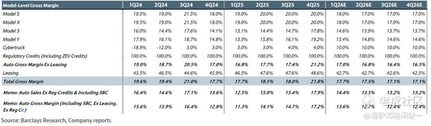 – 2026Q1汽车毛利率市场一致预期14.3%,环比下滑3.6个百分点,跌破16%的红线