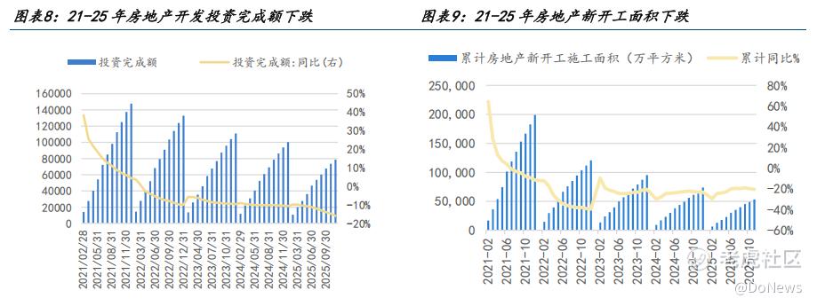 过去十余年,家居行业的扩张高度依托地产红利释放,形成了以“规模化生产+标准化产品+广泛经销商网络覆盖”为核心的供给侧增长模式。企业依靠渠道铺设、产能复制与市场外溢,便能够承接房地产上行周期带来的增量需求,行业发展长期与房地产开发投资、新开工面积及商品房销售面积保持高度同频。