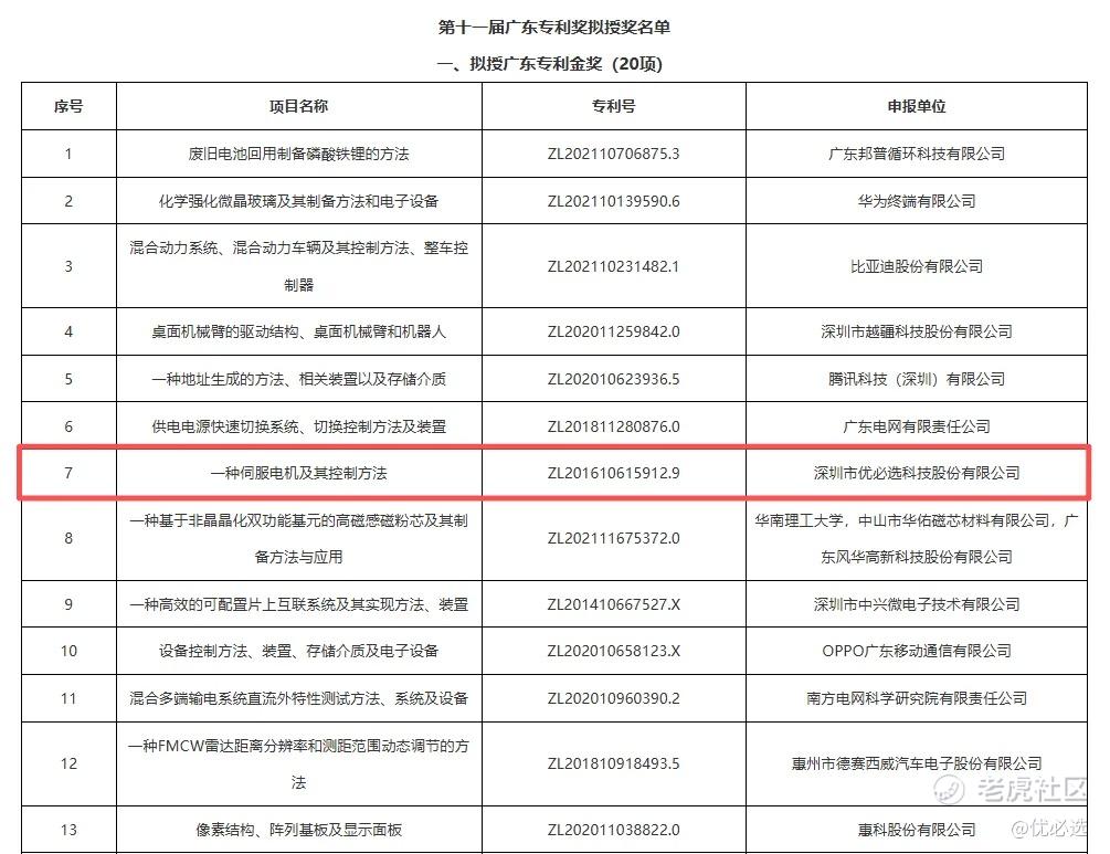 近日,第十一届广东专利奖评选结果正式揭晓,优必选凭借“一种伺服电机及其控制方法”发明专利,荣获本届广东专利金奖,该奖项是广东省人民政府设立的知识产权领域最高奖项。这项专利实现了人形机器人核心技术的多项突破:伺服驱动器控制精度提升3倍,制造成本降低75%,产品体积减小、重量减轻40%,力矩密度突破100Nm/kg,显著优于国际主流厂商。