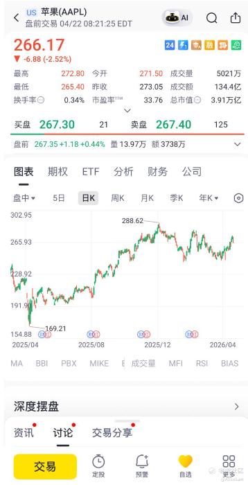 消息公布后, $苹果(AAPL)$ 股价出现小幅下跌。股价在周二开盘后跌近1%至约270美元,盘中一度跌超2%,怎么说呢,感觉在华尔街语境中,Tim Cook不只是CEO,而是“可复制现金流+政策博弈能力+资本纪律”的人格化表达。当这样一个“低波动锚”退出CEO岗位时,即便是内部提拔,也会触发自然的风险重定价。所以,这1%~2%的下跌,本质不是看空苹果,是在给“后库克时代”贴一个不确定性标签。
