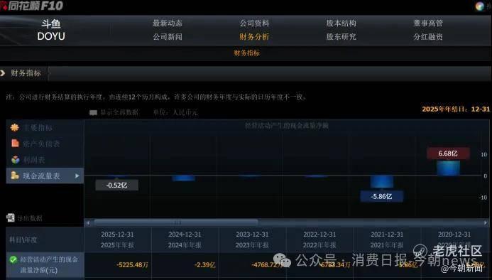 截至2025年,斗鱼经营活动现金流仍存在一定压力,若不补充资金,或将对其持续运营造成很大挑战。