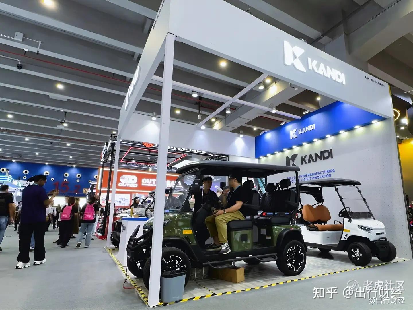 主展台“Kandi”聚焦“全域智能载具”,覆盖高尔夫球车、UTV、组合冲浪板等多元化产品,瞄准户外、休闲、园区等大众商用场景;