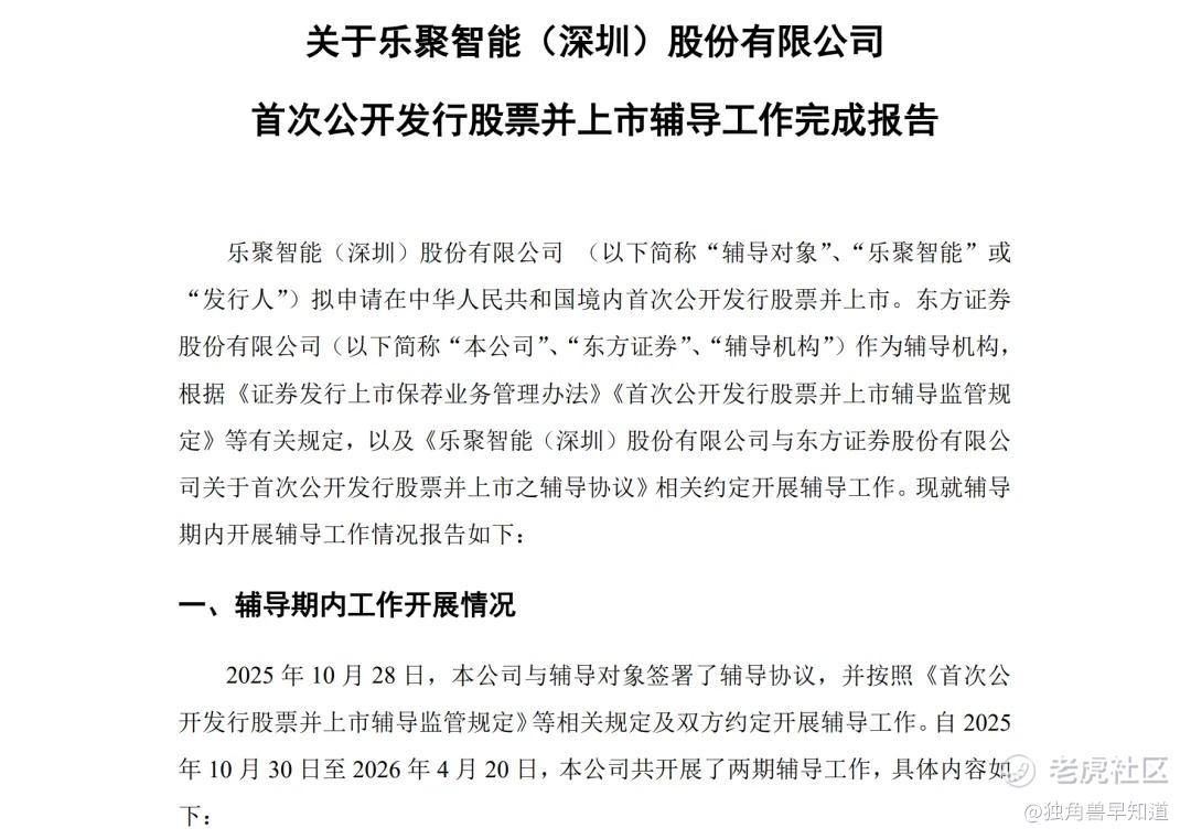 4月22日,证监会网站披露,乐聚智能(深圳)股份有限公司IPO辅导状态变更为“辅导验收”,辅导券商为东方证券。