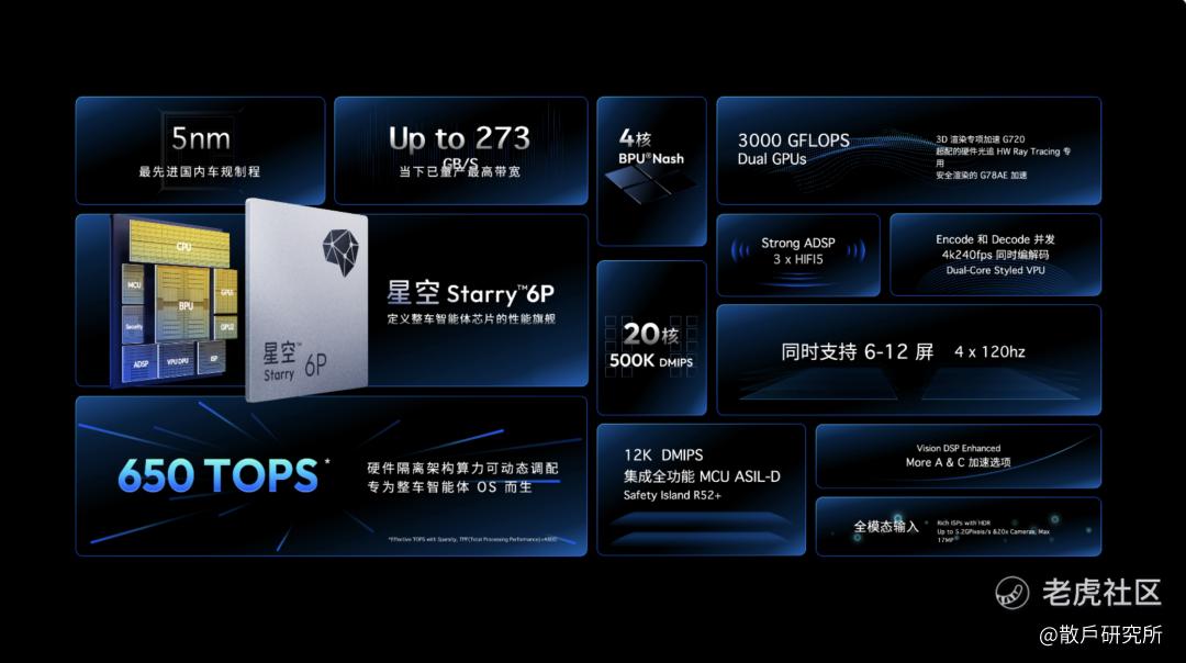 而“星空”芯片让这一切有了转机,作为业界唯一量产的5nm舱驾一体芯片,其将性能优势发挥到了最大,算力达到650 TOPS,内存带宽273GB/s,让车更聪明、响应更快。