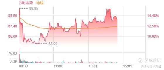 今日开盘,华勤技术(03296.HK)涨12.68%,报87.55港元/股,市值约940.53亿港元。